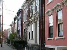 - π Riverside Drive Historic District (East of the Roebling Bridge North of 6th St). One of the oldest neighborhoods remaining in the Cincinnati area, with many charming houses dating from the early to mid 1800s. Because it was built on a bluff and less flood prone than many other places around the river, there are lots of stately old mansions with a blend of Antebellum South and early Mid-Atlantic style architecture. This area is known to house the birthplace of Boy Scouts of America founder Daniel Carter Beard (which there is a small memorial to, though the house is a private residence). Its also great for an afternoon stroll along the river with George Rogers Clark Park being a popular spot for weddings.