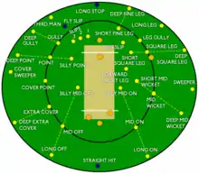 The team which is bowling selects one player to bowl and the others field. A special position to field is wicket-keeper. He stands behind the wicket, wearing protective pads, and is also the only fielder allowed to wear gloves. The remaining nine players take up fielding positions around the field — the positions are named (using terms such as "silly mid-off") and although these may seem to be random, a good captain will carefully assign the positions, and move players during the play.