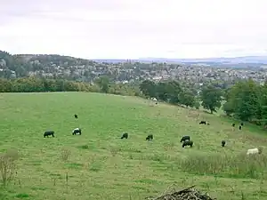 Crieff is a town in Perth and Kinross on the edge of the Scottish Highlands, with a population in 2016 of 7430. It's a well-preserved Victorian resort town, along with Comrie to the west. The main reason to visit is to see the terraced gardens of Drummond Castle.