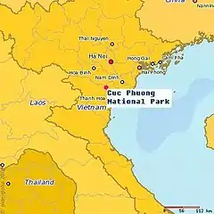 Cuc Phuong is in the foothills of the northern Annamite Mountains. The park consists of verdant karst mountains and lush valleys. Elevation varies from 150-656 m at the summit of May Bac Mountain, or Silver Cloud Mountain. The limestone formations produced numerous caves, many of which are accessible for exploration.