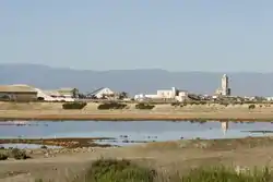 Leaving the mountains of the Rodalquilar landscape behind, continue from east to west across the Cape Gata Mountains through the fields of greenhouses and then turn southwards in Ruescas until you reach the Cape Gata salt marshes. An enormous change in the territory can be recognised during this journey, with a stark contrast between the mountain section and the extraordinarily flat landscape that can be seen to the west of Cape Gata. The current state of conservation of the physical environment in this territory, inside the Cape Gata-Níjar Natural Park, and the broad expanse of this working salt marsh offer a view of a landscape of major environmental value in which vestiges of the cultures of different ages stand alongside each other. Mostly related to the exploitation of coastal resources such as fishing and salt extraction, this results in the presence of extraction, processing, communication and transport infrastructure. If you take up a position in the mountain foothills here, close to where the lighthouse stands in the cape, and look towards the coast at the enormous expanse of lagoons and salt pans, you can see that the broad outlines of the landscape are distinctly horizontal, a natural arrangement that contrasts with the vertical buildings in the village, with the church and the slender church tower, the factories, the houses and the piles of salt by the salt flats catching the eye. Less easy to make out is the seawater pumping and feed infrastructure, the contrasts roads between the marshes and the water conduits and drainage channels.