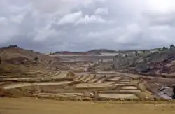 In the foothills of the Sierra Morena mountains, the Riotinto-Nerva mining basin is located in one of the largest polymetallic sites on the planet, the Iberian pyrite belt. During the 19th and 20th centuries, it was the biggest exporter of these raw materials in the world. The Riotinto Heritage Area shows how human activity has impacted the shaping of the landscape, transformed by empty open-pits left by extraction, the accumulation of waste and the construction of a large array of infrastructure. These are reassembled in a new landscape marked by the steep slopes of the natural hillsides, the waste tips, the blasting and the strip pits, and by the gullies of the Río Tinto river—named as such due to its bright red colour, caused by the volume of iron that accumulates in its waters- on the road to the south.