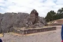 - 🌍 Qenko (Q'enqo). The second site up the road from Sacsayhuamán. Take the combi shared buses up the hill for S/1 or take a walk of about 0.5–1 km up a gradual incline to visit the site. Its name means "Zig-Zag" in Quechua, and probably refers to the Zig-Zag channels carved into a rock. Explore the pass through cave and view the altar on which llamas were sacrificed. The large erect stone shown on the boleto turistico is a solar calendar. On each side of the stone is a square wall two stones high. Each stone is representative of a number of days, the total is the total days in the year. Opposite the stone are the familiar windows in which mummies and human remains were discovered. Adjacent to the site is the smaller archeological site Q'enqo Chico. Accessible with the boleto turistico.