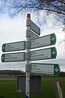 More enthusiastic cyclists may want to use lange-afstandsfietsroutes (long distance bicycle routes) or landelijke fietsroutes (national bicycle routes), both abbreviated as and referring to the same LF-routes.