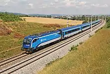 There are four daily trains from Munich to Prague, but they are slower than the abovementioned bus, because of slow and curvy (although picturesque) railway at southwestern Czech border. The cheapest way is a Bayern Ticket (€21 for one person, €29 for group up to 5 people) to the Czech border combined with Czech domestic ticket (see #Cheap ticket combinations).