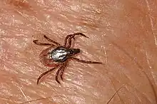 Ticks like to cling to any soft, warm, well-perfused areas of your body (undersides of knees and elbows, skin around ankles, groins, neck area, behind your ears, etc.) and if not removed, they'll suck your blood until they grow about 1 cm big. Never try to scratch a tick off or pull it out, because damaging it can cause you a serious infection. The sooner the tick is removed, the smaller the chance of infection. Either ask a physician to remove a tick for you, or try to remove it by yourself: lubricate your finger with any greasy lotion and gently wag a tick from side to side until it wobbles free. Then flush it down the drain - never crush or burn it to avoid infection. Watch the affected spot: if you see a growing red spot developing there any time during next several months, immediately visit your physician and tell him that - you might have contracted Borreliosis. It is dangerous, but it can be easily treated with antibiotics during early stage. The American vaccination against Borreliosis most probably won't work against European strains (B. afzelii and B. garini). Ticks are sometimes present even in city parks, including Prague.