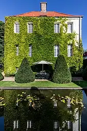 - 🌍 Haus Osthoff, Von-dem-Busche-Str. 30. 18th-century Baroque brick manor covered by vine foliage; beautiful Baroque garden with accurately trimmed boxwood hedges, flowerbeds and a water lily pond.