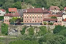 - 🌍 Stift Dürnstein (Dürnstein Monastery), Dürnstein 1, ☏ +43 2711 227, stift.duernstein@aon.at. Apr-Oct: M-F 09:00-18:00, Su and holidays 10:00-18:00; last admission at 17:30; Nov-Mar: guided visits on Su only in groups of 20 or more. The former monastery was founded in 1410, and forcibly closed in 1788 by order of Emperor Joseph II. It is today managed by a consortium of several Augustine monastic orders, and its distinctive blue and white bell tower is considered to be an icon of the Wachau region. Independent visitors can access the courtyard, church, and main terrace. Guided tours (in German, English, and French) also allow access to the crypt and the cloister; tours take place every Sunday at 12:00 or at other times if booked in advance, and last about an hour. Without guide: €3.50 (adults), €2.60 (students), €1.50 (children 6-14); with guide: €6 (adults), €3.50 (students), €3 (children 6-14).