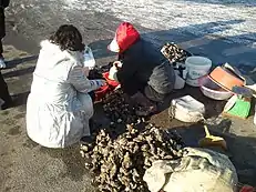 - π Daebudo Bangameori Food Culture Street (just off the Sihwa seawall, at the entrance to Daebudo). There are more than 60 restaurants on this street. They specialize in seafood and are famous for sashimi, snails and kalguksu (a kind of noodle). There are so many restaurants in a row, it is hard to choose just one. Watch out for the touts who stand in front of their restaurants trying to lure you in.