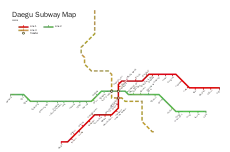 Daegu has three subway metro lines. The first two lines intersect at the main downtown stop of Banwoldang.