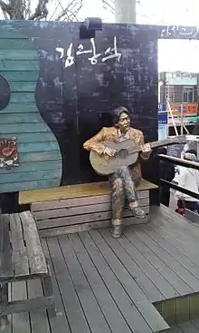 - 🌍 Kim Gwangseok-gil Street. A mural street near Bangcheon Market where the now deceased Kim Gwangseok used to live. The 350-m-long wall has statues and murals depicting his life and music. Every autumn, the area of Bangcheon Market and Dongseongno hosts a “Kim Gwangseok’s Singing Contest.”