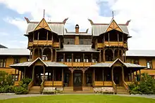 - 🌍 Dalen Hotel, Hotellvegen 33, ☏ +47 35 07 90 00 (off season Tu–F 10:00–15:00), post@dalenhotel.no. Late April–early October. Check-in: 15:00, check-out: 11:00. Tourist hotel inaugurated in 1894, after the extension of the Telemark Canal. It was built in the style of a Swiss chalet with elements of National Romanticism and Dragestil. It soon received royal guests from all over Europe, beside aristocracy and mere mortals. During the German occupation, the hotel was used as a resort for German officers; the building fell into disrepair. It was reopened in 1992 after significant restoration work. The hotel's facade, lounges, dining room, and main lobby are almost identical to how they looked upon the building's completion in 1894. Rooms are in historic style, without TV, phone or minibar, a few without en suite facilities. Tables at the restaurant need to be booked, with priority for staying guests (continental breakfast, breakfast, lunch, afternoon tea, dinner; menus, no à la carte, some special diets accommodated by advance request). No special arrangements for children, who are expected not to disturb the atmosphere. One-day hotel package including dinner 6,000–14,000 kr; lunch 250–450 kr.