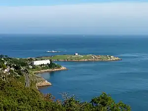 - 🌍 Dalkey Island, 300 m offshore, is now uninhabited but was long settled and a centre for pilgrimage. There are remains of old field systems, St Begnet's church, a 'cairn' burial, a gun battery and a prominent Martello Tower. There are two Holy Wells, one being reputed to cure scurvy, and its waters were laden with swamp vegetation so the claim may not be far-fetched. Look for seals, black rabbits, wild goats and Roseate Terns. The rocks out to the east are the hazardous "Muglins", with a lighthouse. In fine weather boat trips run daily from Coliemore Harbour, adult €10. Trips may also run from Bulloch Harbour near Dun Laoghaire.