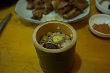 It is steamed rice after putting rice and other grains in a bamboo barrel and covering it with a cover like Korean paper or cloth. It is a local food in Damyang-gun, where the number of bamboo trees is the largest in the country.