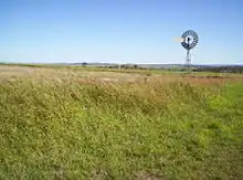 Various vegetables, beans, cotton, wheat, barley and sorghum are grown on the hill country of the Darling Downs. Long roads, bushes, meandering rivers and herds of cattle stretch between the farmland and characterise the region. Other typical landscapes in the region include irrigation systems, windmills driving pumps and water from the Great Artesian Basin, light aircraft spraying fields, old sheep shearers' huts and other scattered relics of a bygone era from the early days of European settlement.