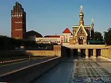 - 🌍 Künstlerkolonie Mathildenhöhe. to see the most interesting ones. This is the most beautiful part of Darmstadt. There is also a small park, an art museum and a Russian-style Chapel there. In 1899 Grand Duke Ernst Ludwig invited seven artists to come to Darmstadt and, thus, the Artists’ Colony Mathildenhöhe was founded. The first of four large art exhibitions took place in 1901. The artists presented their ideas of a new living and working world. They designed a colony, the focal point of which is the Studio House, the Ernst Ludwig House. Since 1990 it houses the Artists’ Colony Museum. In 2021 Mathildenhöhe was listed as a world heritage site.