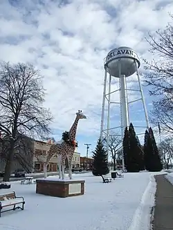 - Downtown Delavan, Intersection of Walworth Avenue and 3rd Street. Home of numerous quaint restaurants, bakeries, antique stores, clothing retailers and the famous circus statues at Water Tower Park.