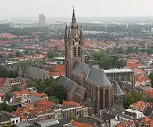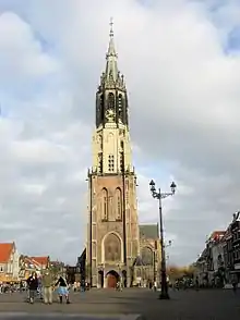 - 🌍 Nieuwe Kerk (New Church), Markt 80, ☏ +31 15 212-3025. Closed on Sundays. Located at Markt, this church was built in 1496. The royal burial chamber is in this church but is not accessible. Prince William of Orange was the first to be buried here, after being shot in 1584. It is possible to climb the 108.75 m tower to get a impressive view of Delft and surroundings. It's the second highest church tower, after the Dom church of Utrecht. You can see both Rotterdam and The Hague. On clear days is it possible to see Leiden and even Amsterdam. It's well worth the effort. €5.5 for the church, €4.5 for the tower and €8.5 for both. A ticket is valid for both New and Old Church, but only the tower in the New Church can be climbed.
