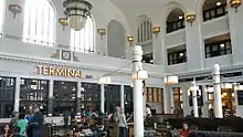 The central bus station is in the underground 🌍 Union Station Bus Concourse under 17th St behind the historic Union Station building. It can be accessed through the Union Station Building at 1701 Wyncoop St (main entry, location of ticket counters); through the 🌍 Wewatta Pavilion at 1700 Wewatta St (behind Union Station); and through the 🌍 Chestnut Pavillion at Chestnut Pl & 17th St by the RTD light rail station. The Union Station Bus Concourse is serviced by Burlington Trailways, Greyhound, Express Arrow, Bustang and RTD. The ticket desks are in the main historic building while the buses load underground, under S 17th St between the historic Union Station and the light rail station on Chestnut Pl. Some of the same bus companies make additional stops at Denver Tech Center (DTC) and/or in other places, check schedules. The intercity buses are generally accessed through Gates B3 & B4 from the underground station but check tickets and the TV monitors to be sure as they can be through the other doors too. Skyride 'A' Line train to the airport operates from the historic downtown Union Station: