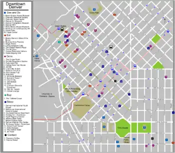 - 🌍 The Westin Denver Downtown, 1672 Lawrence St, ☏ +1 303-572-9100, toll-free: +1-866-716-8137. Check-in: 4PM, check-out: 11AM. Four-diamond hotel in downtown Denver.