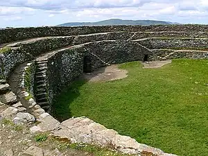 - π Grianan of Aileach, Burt, Co Donegal. 24 hours. Eochaid, the fair-haired, vindictive; he ordered these a rath to build, Aileach . . . - Book of Lecan. This is a sturdy 6th / 7th century ringfort atop Greenan Mountain, with walls 4.5 m thick and 5 m high. It's built over earlier structures going back to the Iron Age, and was inhabited as late as 1050 AD. Free.