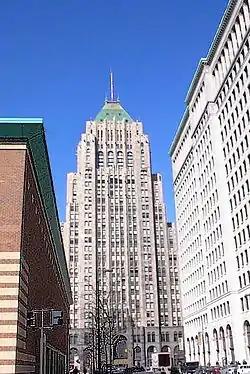 - π Fisher Building, 3011 W Grand Blvd. This National Historic Landmark lies in the heart of New Center. The Fisher Building is a good enough reason to visit New Center. The office building rises 30-stories with a roof height of 428 ft. Designed in Art Deco, it is considered Albert Kahn's greatest work. The year of its construction, the Fisher building was honored by the Architectural League of New York as the year's most beautiful commercial structure. The building has been called Detroit's largest art object. Free tours of Fisher Building are available (check website for exact schedule).
