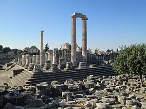 Trying to visit PMD by public transport will test your patience. Didyma is 3 km north of Didim town and 5 km from the beach strip so you could walk, but to start fresh you're better taking a dolmuş to the district of Yenihisar.