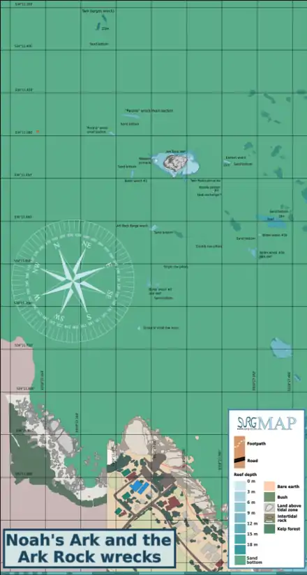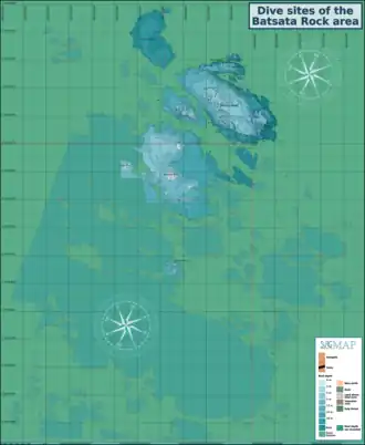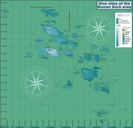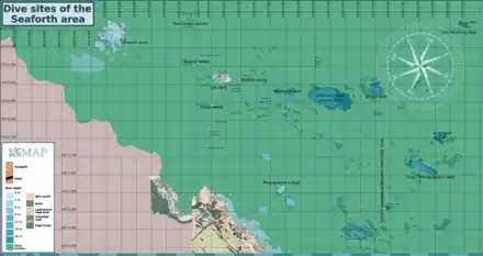 - Reef dive. Boat access only. Maximum depth about 30 m.