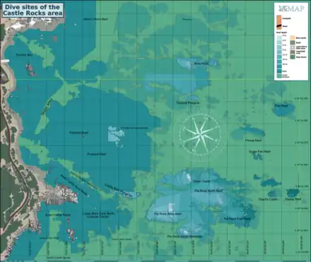 - Reef dives. Boat access only. A large area of mostly granite reef.