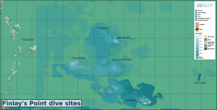 - This is a small granite outcrop reef on a sand bottom directly offshore from Finlay's Point on the 30 m depth contour. Rich in Gorgonian sea fans.