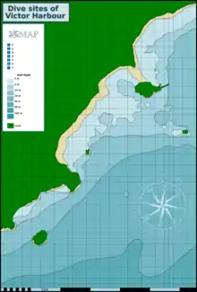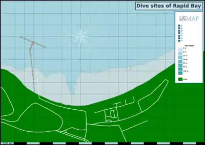 - Wreck dive. Boat access only. Maximum depth 20m. Former SA government suction dredge, South Australian, sunk in 1985 as an artificial for recreational diving and fishing.