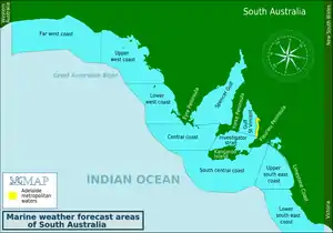 The Great South Australian Coastal Upwelling System is Australia's only deep-reaching coastal upwelling system, bringing nutrient-rich water up from depths exceeding 300 m. It is a seasonal system which extends from Ceduna in the eastern Great Australian Bight, to Portland in Victoria, a distance of about 800 km. The upwelling events usually occur in summer, from December to April, driven by southeasterly coastal winds.