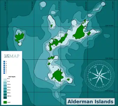The Alderman Islands is a small archipelago to the east of the Coromandel Peninsula in the Bay of Plenty, North Island, New Zealand. The islands are sufficiently offshore to enjoy the cleaner waters associated with New Zealand's offshore islands, but are close enough to visit as a day trip from the mainland.