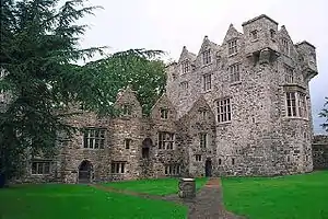 - Parish church next to the castle is C of I, built in confident Gothic in 1828.