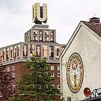 - 🌍 Dortmunder U, ☏ +49 231 5024723. The same way one associates the city Paris with the Eiffel Tower, London with the Big Ben or Cologne with the Dom, the city of Dortmund is associated with the U-Tower. This high-rise former brewery building has been a Dortmund landmark since 1927. It housed the Dortmunder Union Brauerei, which for a short time was the most productive brewery in West Germany. That trademark “U” on the roof was added in 1968 and stands nine metres tall. In 2010, to coincide with the Ruhr becoming European Capital of Culture, the Dortmunder U was turned into a centre of culture and creativity, hosting the Ostwall Museum, exhibition rooms, a restaurant, an art association and a campus for the Dortmund University of Applied Sciences. Throughout the day the grid of panels under the “U” displays the “flying pictures” installation by the cinematic artist Adolf Winkelmann.