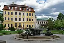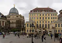 - 🌍 Taschenbergpalais Kempinski, Taschenberg 3, ☏ +49 351 49120, fax: +49 351 491-2812. The Baroque Taschenberg Palace from the early 18th century was reconstructed as a luxury hotel of the Kempinski chain in 1995 after being almost completely destroyed in 1945. At its launch, it was the first five-star hotel in Saxony. Monarchs, heads of state and international celebrities have stayed here during their visits to Dresden and even the Bilderberg Conference was once held in it. €119.