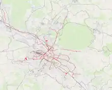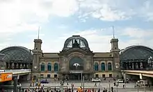 - 🌍 Dresden Hauptbahnhof (2 km from the Old Town, at the southern end of Prager Straße). Trains from nearby towns, such as Meißen and Pirna run from about 04:30 till around midnight. The station has several stores including a supermarket, most of which are open on Sundays. It is very well connected with the local bus and tram network, and can thus be reached very quickly from nearly everywhere in town, even at night.