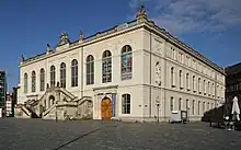 - 🌍 Kulturpalast (Palace of Culture), Schloßstraße 2 (Tram Altmarkt), ☏ +49 351 4947390. The Kulturpalast, or Palace of Culture, is a socialist era building finished in 1969, standing right in the middle of the gradually reconstructed Altstadt, in stark contrast to the historic buildings surrounding it and supplanting some of the old buildings that closed the Altmarkt from the north before the second world war. It was originally planned to be a super-tall, ornate structure in the mould of the Palace of Culture in Warsaw, but ended up being a large concert hall with height on par with surrounding buildings, in an austere Bauhaus-inspired style. It is now a protected architectural monument, along with a giant socialist-realism themed mosaic on its western wall, facing Schloßstraße. Between 2012 and 2017 the Kulturpalast was completely renovated and now houses a concert hall, the city's main library and a Kabarett venue.