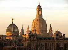 - 🌍 Frauenkirche, ☏ +49 351 65606100. The original Church of Our Lady was completely destroyed during World War II; however, it has been reconstructed. The City of Coventry, which was raided by the Luftwaffe in WWII, donated the golden cross for the dome of the church. Check out some ruins in the basement. For €10 (concessions €5; families €22) you can walk up to the viewing platform on the dome and enjoy a great view of the city. You must have good walking shoes, otherwise you might not be admitted. As well as being a working church (with services once a month in English), there are also regular concerts. Tickets tend to be expensive but sell out quickly, so try to book ahead of time. The seating can be a little hard. Free.