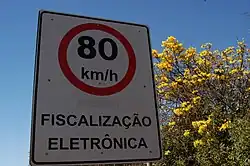 Brazilian road and traffic signs in general follow international conventions, in a mixture of the US MUTCD and FN Vienna convention standards. The Vienna round blue-and-white mandatory and red-and-white prohibition sign classes are all red-and-white, crossed over if about a prohibition, otherwise a mandatory instruction. Warning signs are black and yellow diamonds. Text is used more sparingly than in the US.