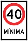 Occasionally, there is a minimum speed sign in Chile, with a white rectangle with black text reading "MINIMA".