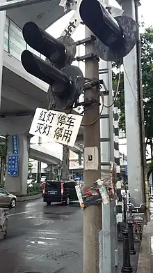 Foreign drivers must try to adapt to this (or, perhaps more sensibly, give up and take taxis or hire a driver). You do not have to learn to drive like a Chinese, but at least you should not be surprised when they do. In the absence of road signage, the rules of the road specify that the vehicle ahead has right of way (see Right of Way section in this article). Therefore there is absolutely no point getting angry if someone cuts you off or drives against the red light or on the wrong side of the road. You simply yield and carry on as if nothing had happened.