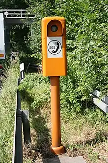 - Arrows on the small posts along the Autobahn will guide you to the next orange emergency phone. These will automatically connect you free of charge with a call centre that directs police, ambulances or just a mechanic.
