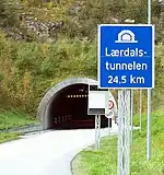 No driving experience in Norway is complete without tunnels. There are thousands of them, and they are fascinating to those unfamiliar with them. Most tunnels are in Western Norway and Nordland county. Road E16 has over 60 tunnels, making up 15% of the entire road. E6 has over 80 tunnels, E39 has over 100 tunnels. The longest is 24 km, but 1–3 km is more common. Length of tunnel is indicated at the entrance and for the longer tunnels kilometers to exit is also indicated inside the tunnel. Each tunnel has a name and drivers should use the name to inform police or fire brigade in emergencies.