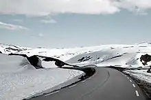 | Fastest and shortest road Oslo–Bergen. | Hardangervidda mountain plateau (often closed in winter) | (none) | Ordinary road, in periods fairly much traffic, especially near Oslo | Very scenic, mountain plateau, steep valleys, fjords views | ||