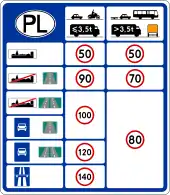 - 100 km/h on single carriage way car-only roads (white car on the blue sign),