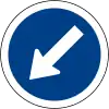 This no-overtaking zone sign is influenced by the U.S. but is pointing to the left. You cannot overtake when this sign is present.