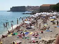 - Banje Beach (near the Old Town). A well-located pebble beach. There's a concessioned part with an entrance fee, but also a public part which is always livelier and more relaxed. Great way to beat the heat in the middle of the town. Amazing view to city walls, Old Town Dubrovnik and the island of Lokrum. Beach volleyball, mini football or water polo. You can also enjoy lying on deck chair and having a drink.