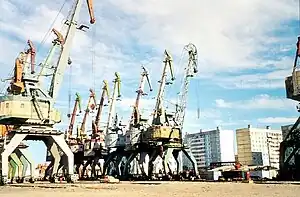 Dudinka is a large port with cargo ships arriving from all over Russia and beyond; pretty much everything consumed in the nearby Norilsk comes by ship via Dudinka, and everything produced in Norilsk (metals and metal ore concentrate) is shipped out via Dudinka. Some ships visiting Dudinka accept passengers; just don't expect it to be possible to get the permissions without extensive skills in navigating through Russian bureaucracy. A more viable option to get here is to hop on a ferry from Krasnoyarsk, the shipping company PassazhirRechTrans usually have three to six departures every month during the summer season. The journey along the mighty Yenisey river takes three nights and scenery along the route are spectacular.