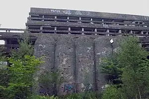 - π St Peter's Seminary above Cardross is a bizarre ruin. It was originally a 1860s baronial mansion that became a Roman Catholic seminary in the 1960s. This was then engulfed in a brutalist concrete carapace that won lots of awards but was a shambles to maintain, occupy or cultivate a pious priestly vocation within. The seminary decamped to Glasgow in 1980 and for a time the building was a drug rehab project, then a vandalised mess. The mansion was demolished in 1995 after a fire rendered it unsafe. The concrete structure has defeated a string of projects to rescue it and you may find the area fenced off.